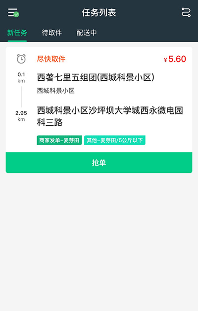 送来达配送系统是一款同城跑腿配送系统,适用于代买、代送、代取、代办等城市跑腿配送服务。本端为配送端APP,适用于配送员,配送员可通过本APP接收指派订单和在自主抢单。