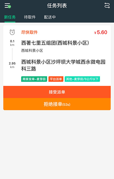专注于外卖配送!致力打造良心化第三方配送~ 商户自配送抽点低,骑手收益高! 只要路是对的,就不怕路远。 As long as the road is right, you are not afraid of the distance.